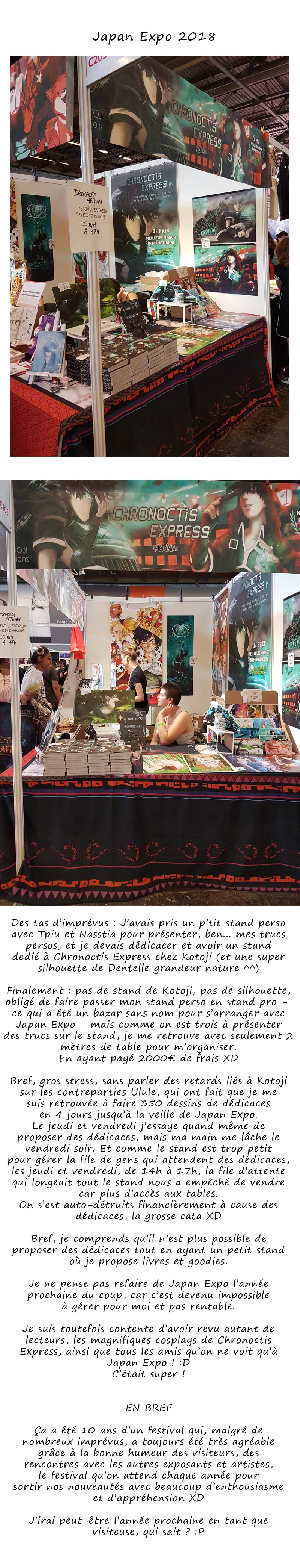 Il y avait Nasstia pour s’occuper des ventes, et elle gère super bien : le souci est que la file d’attente pour les dédicaces est trop longue (je suis victime du succès de Chronoctis Express ha ha XD)